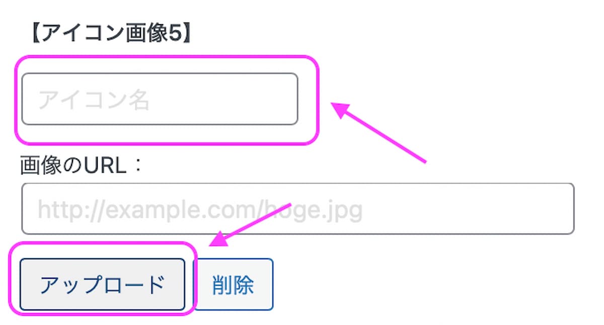 はじめにアイコンの名前を入力し、アップロードをクリックしてください。